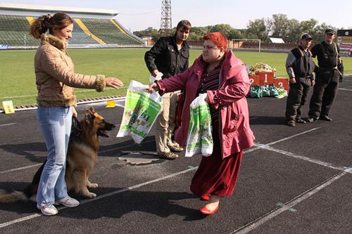 Выставку обслуживали судьи международной категории из г. Запорожья. Количество собак в этот раз оказалось немногочисленным. На стадионе, как поделились опытные заводчики, были представлены в этот раз, в основном, собаки-чемпионы нашей области. То есть те собаки, у которых не только «вся грудь в орденах», но и за плечами – серьезная география успеха. Этих животных знают не только заводчики нашего города и области: имена (именно – имена, думаю, в этот раз недостойно этих красавцев называть по кличкам!) этих собак-чемпионов известны в странах не только ближнего, но и дальнего зарубежья. Эти собаки прославляют кинологию нашей Черниговской области. В ходе выставки состоялись разнообразные соревнования: конкурс на лучший собачий карнавальный костюм, конкурс «Ребенок и собака», чемпионат немецких овчарок, ротвейлеров и молоссов.