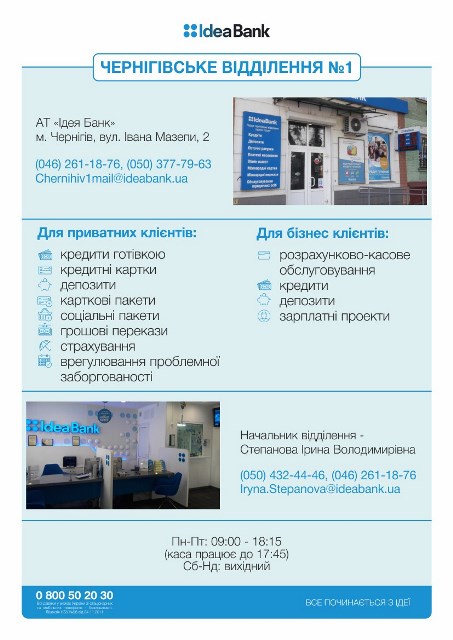 Звертайтесь до відділення Ідея Банку в своєму місті!