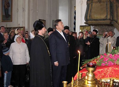 Осмотрев собор, Виктор Янукович поделился с настоятелем впечатлениями от увиденного и подарил храму икону Святого Феодосия Черниговского. Виктор Федорович пообещал рассмотреть возможность оказания помощи в продолжении реставрационных работ уникального исторического памятника Черниговщины.