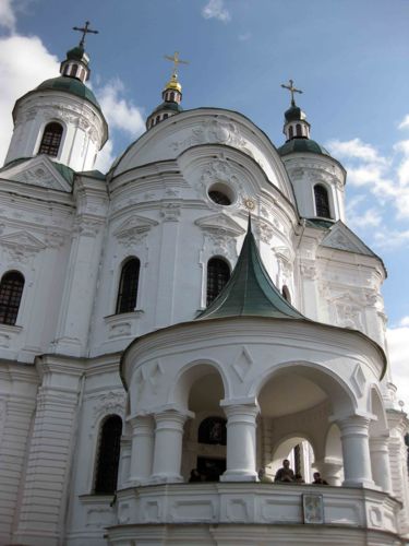Собор Рождества Пресвятой Богородицы сооружён по заказу Наталки Демьяновны Разумовской (Разумихи, матери Алексея и Кирилла Разумовских) архитекторами А. В. Квасовым и И.Г.Григоровичем-Барским в стиле барокко. Реставрирован в 1961-82 гг. Каменный, крестовый, внутри четыре опорных столба несут систему сводов и пять куполов, поставленных по диагонали, как в древнерусских храмах. Собор двухэтажный. На первом ярусе церковь Адриана и Наталии - усыпальня Разумовских. На второй ярус с трёх сторон ведут два полукруглых крыльца с открытой коллонадой, завершённые шатёрными верхами. Утончённый лепной декор стен соединяет формы барокко, рококо и классицизма. В интерьере господствуют центральный купол и многоярусный резной из липы позолоченный иконостас XVIII в., созданный, как полагают, при участии архитектора В. В. Растрелли. Рядом четырёх ярусная колокольня. Существует поверье, что если забраться на самый верх колокольни, то в очень ясный день можно рассмотреть, как блестят золотые купола Киево-Печерской Свято-Успенской лавры, а в противоположной стороне - купола Спасо-Преображенского собора в Чернигове.