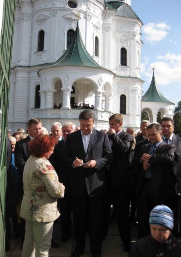 ПОЗИЦИЯ После посещения школы в селе Сыраи в рамках визита в Черниговскую область, Виктор Янукович приехал уникальный по своей архитектуре и красоте собор Рождества Пресвятой Богородицы в Козельце. В храме Виктора Януковича встречал настоятель собора отец Михаил. Он рассказал лидеру Партии регионов о проблемах, связанных с реставрацией этого культового сооружения.