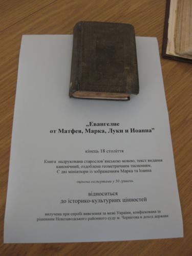 За словами заступника начальника відділу Служби боротьби з контрабандою та порушеннями митних правил Чернігівської митниці Валерія Васильченка, протягом цього року виявлено 16 випадків незаконного вивозу історичних цінностей за межі країни. В більшій мірі намагаються вивести монети, банкноти, предмети побутового обслуговування (патефони, самовари), релігійні книги, холодну зброю – ті, що представляють собою історико-культурну цінність, належать державі та повинні знаходитися в відповідних музеях.