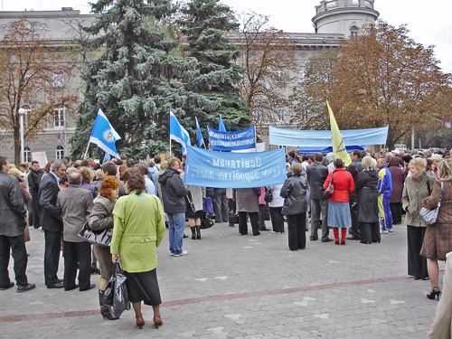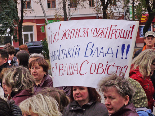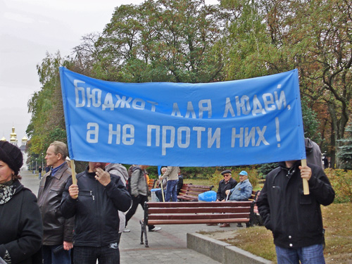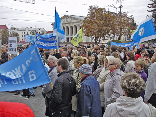 Поддерживая позицию Федерации профсоюзов Украины, участники акции протеста приняли резолюцию с требованиями к центральным органам власти:
