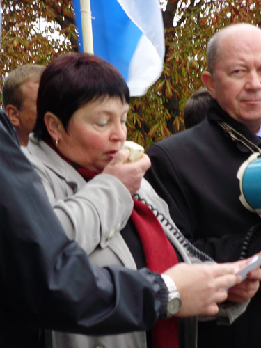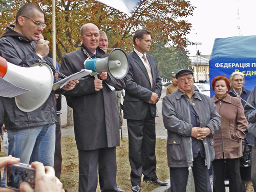 Перед участниками митинга выступили лидеры профсоюзных организаций разных отраслей и уровней: Николай Богдан – председатель Федерации профсоюзных организаций Черниговской области, Сергей Хоботня – председатель областной организации профсоюзов работников агропромышленного комплекса, Нина Трикашна – председатель Куликовской районной организации профсоюзов работников образования и науки, Геннадий Лавриненко – председатель профсоюза Черниговской ТЭЦ и другие.