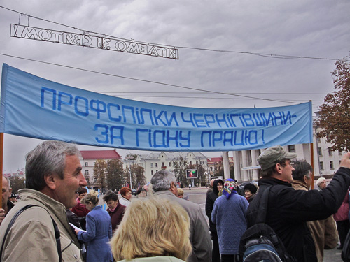 7 октября на Алее Героев г. Чернигова состоялся митинг представителей трудовых коллективов и профсоюзного актива предприятий, учреждений, организаций области по случаю Всемирного дня борьбы за достойный труд. В этот день Федерация профсоюзных организаций Черниговской области присоединилась к профсоюзным объединениям всех регионов Украины, которые подобными акциями хотят напомнить работодателям и правительству о проблемах людей наемного труда.