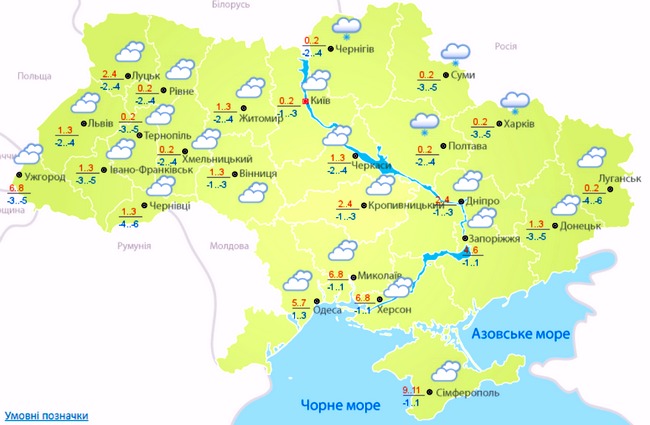У центральних та північних областях стовпчик термометра покаже вдень 0…+4 градусів, а вночі від -4 до -1.