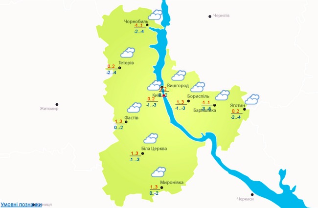 У Києві та області синоптики прогнозують похмуру погоду. Температура повітря вдень буде у межах -1...+3, вночі -4…0.