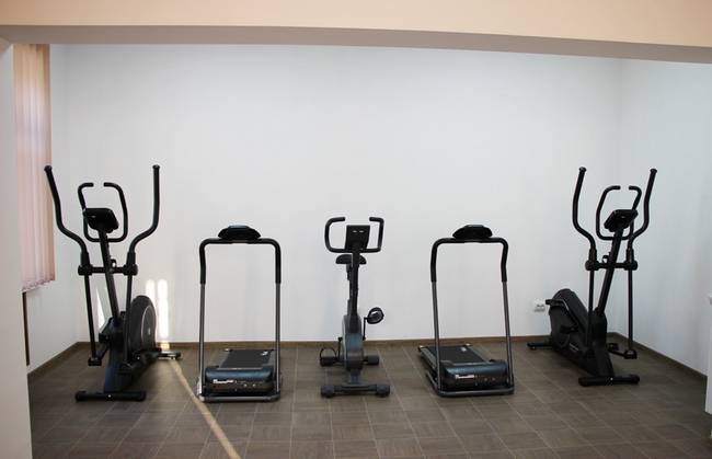 Друга кімната — спортивна. Там розмістили п’ять тренажерів, на яких зможуть займатися люди похилого віку. На стіну повісили великий телевізор, щоб можна було займатися під активну музику.