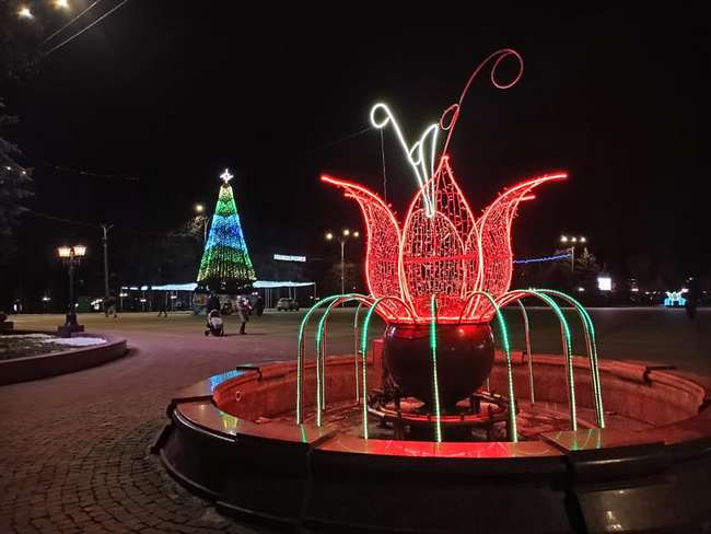 — Без. Зелена красуня так густо засвічена, що якісь інші прикраси були б уже зайві. Також додали паровозик і сніжинку, біля яких можна фотографуватися.