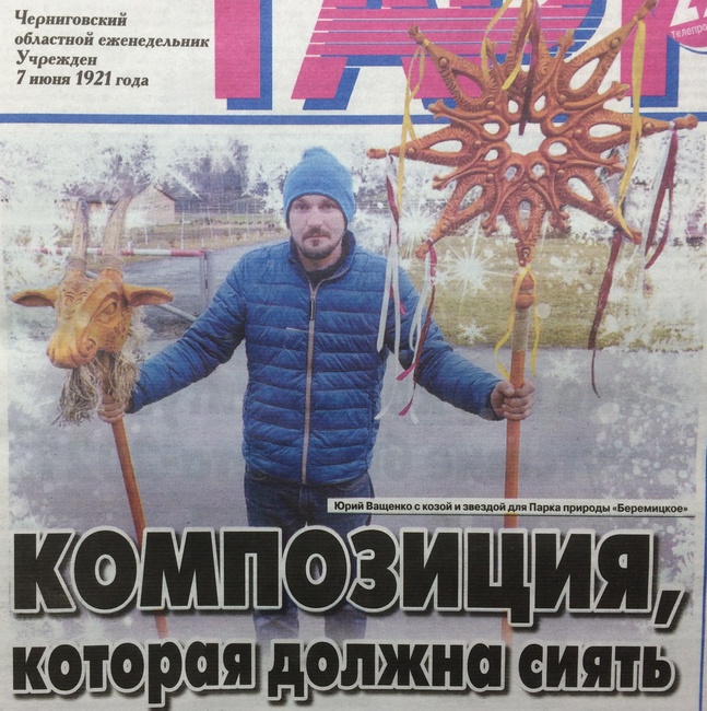 Юрий Ващенко в прошлом году тоже изготовил традиционную резную деревянную Рождественскую звезду из липы, которую теперь на праздники носят в... Парке природы «Беремицкое» на Козелетчине.