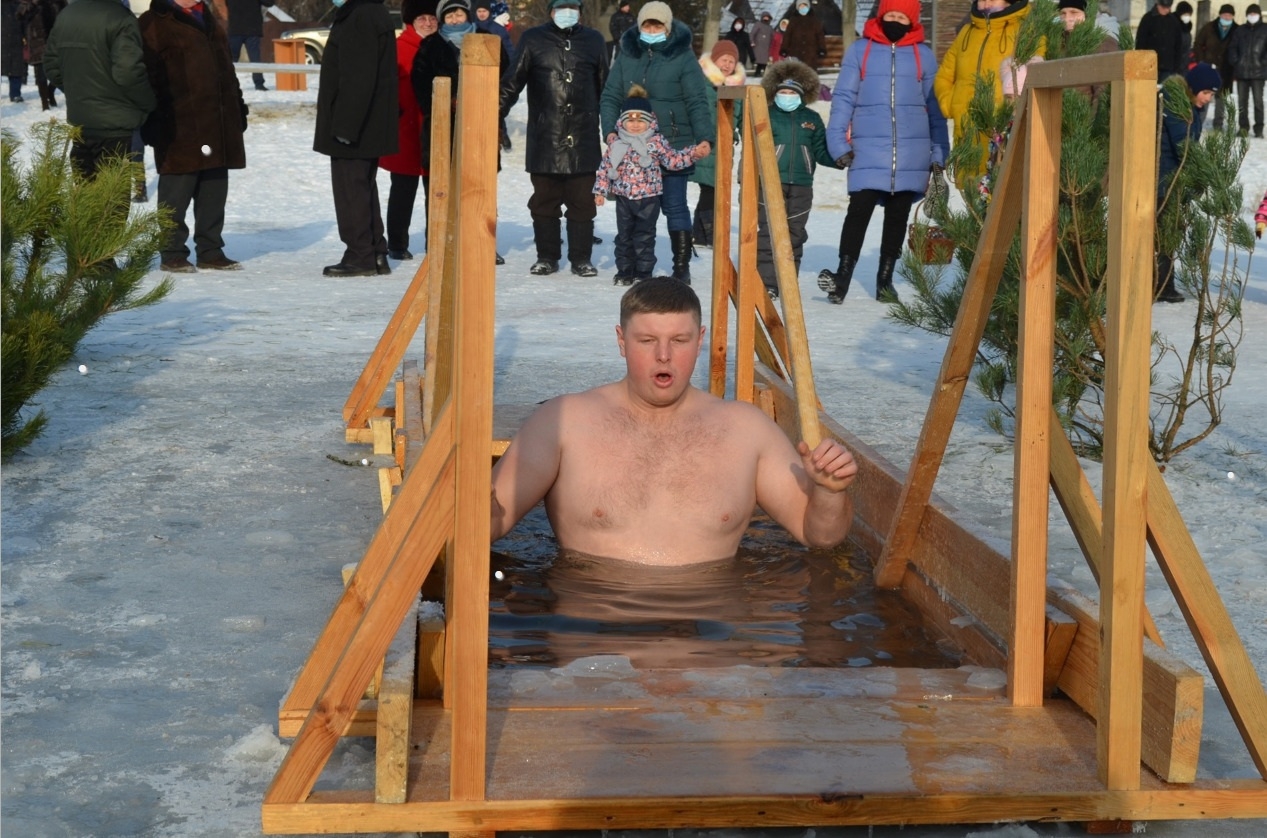 Звечора у понеділок, 18 січня, місцеві комунальники обладнали на центральній водоймі у Корюківці місце для купання. Традиційно ополонку облаштували на «дитячому» пляжі. Охочі зануритися у крижану воду, а цього року вона дійсно була такою, приходили з самого ранку, попри двадцятиградусний мороз.