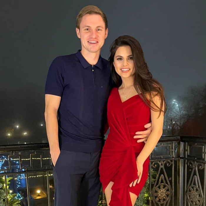 На фото 21-летний Ефим Конопля (защитник) с девушкой.