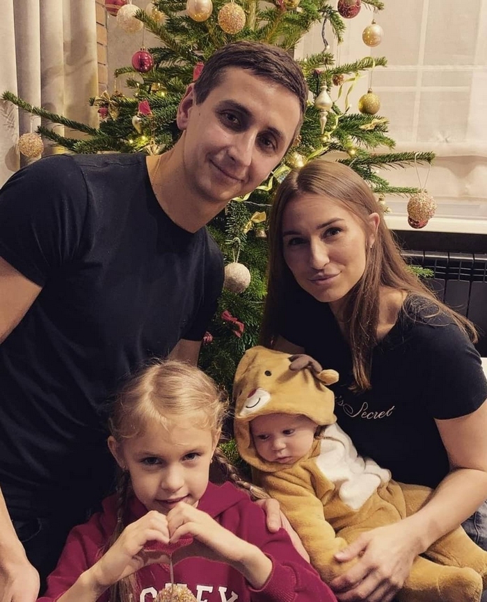 На фото 32-летний Игорь Литовка (вратарь) с семьей.