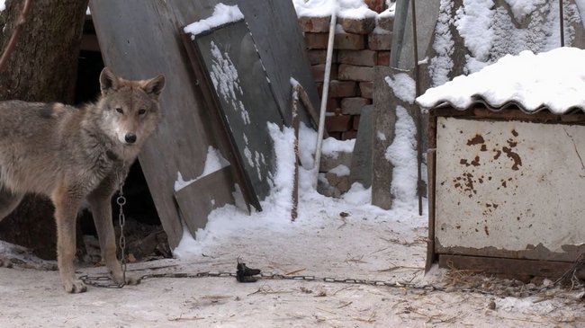 Макеенко посадили Бани на цепь, чтобы не убежал и не нашкодничал. Но держать хищника на привязи опасно. Волк может оторваться, убежать, а потом напасть на кого-то или же погибнуть сам.