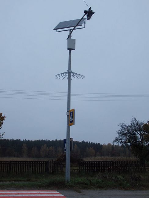 На трассе в Петровом Черниговского района около пешеходного перехода — два светофора. Работают от солнечных панелей. Жителей в Петровом мало, но трасса оживленная, светофор нужен. И чтоб панели не сперли!
