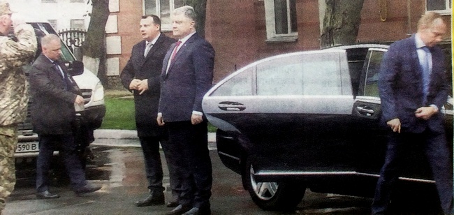 В черном «Мерседесе» на переднем сиденье был Атрошенко, на заднем — Кулич и Порошенко