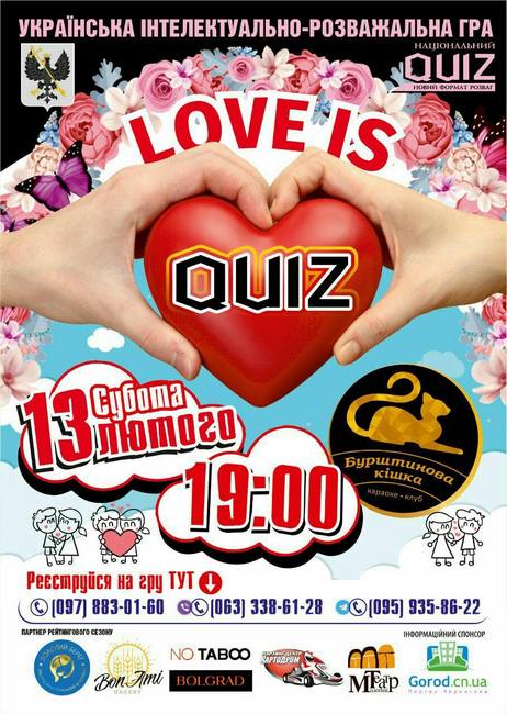 Отже, тематична гра "LOVE IS - QUIZ!" проєкту Національний QUIZ в м.Чернігів відбудеться: