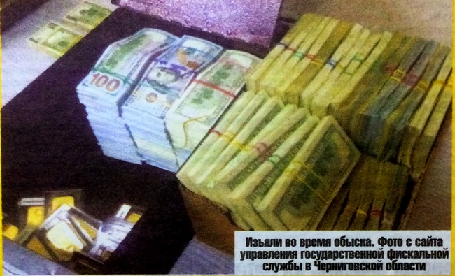16 октября сотрудники фискальной службы в Черниговской области озвучили суммы денег, изъятых в процессе обысков в Чернигове. Цифры были еще больше, чем назвал Луценко: 8 миллионов 200 тысяч гривен, 5 миллионов 521 тысяча долларов, 300 тысяч 500 евро и... 6 килограммов 610 граммов золота в слитках.