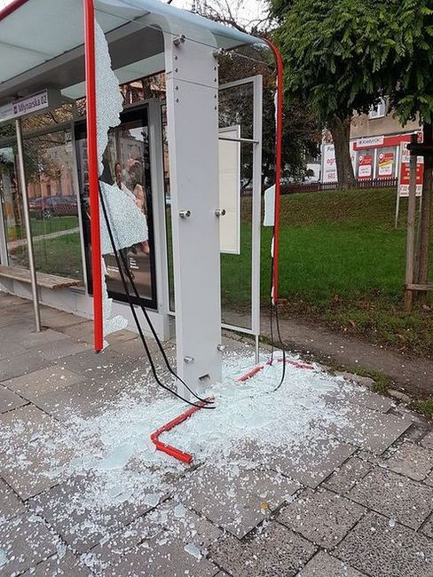 так варшавские чиновники называют разбивателей остановок. (http://wawalove.pl/Rozbite-szklo-i-uszkodzona-konstrukcja-Wandale-zniszczyli-przystanek-na-Woli-a27362). Да, в столйш Польши они тоже стеклянные. С 2014 года поставили 1580 новых автобусных остановок для Варшавы. Мало кто знает, что создание единой остановки занимает не менее полугола подготовки и требует получения около 24 разрешений. То же самое, что и строительство дома. Ее монтаж длится от одного до двух дней», — пишут на сайте фирмы AMS, что занималась установкой. Толщина стекла — 8 миллиметров.