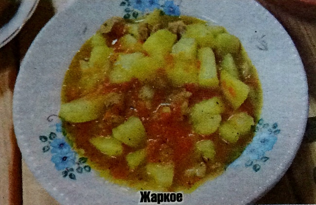 Жаркое принесли в суповой тарелке. Картошки было много. Мяса — не очень. Но в целом вкусно.