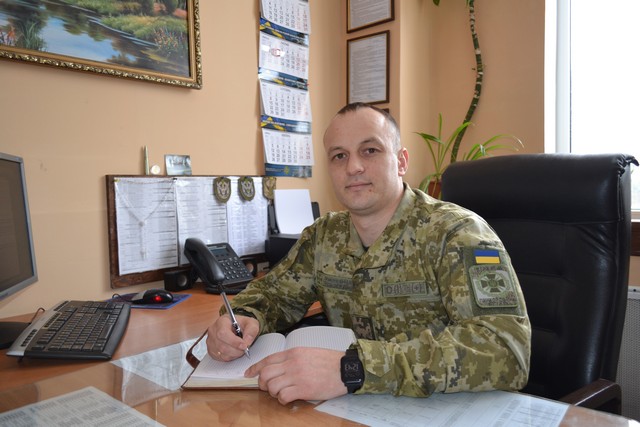 - Три роки тому в кожний підрозділ охорони кордону ввели в штат посаду військового капелану. У нас цю функцію зараз виконує отець Максим. Він проводить служби в Катериненській церкві по суботах та неділях, а в нас працює по будніх днях. Приймає військовослужбовців на місці, а також виїжджає на прикородонні застави та організовує бесіди з людьми, читає лекції, проводить різні релігійні обряди, як наприклад, освячення води. Він дуже цікава у спілкуванні людина, має вищу історичну освіту.