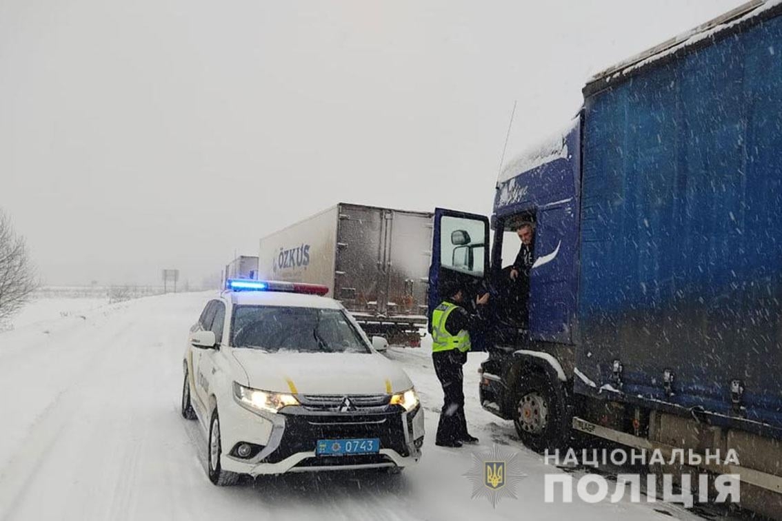 Зокрема, до правоохоронців звернулися водії вантажівок, які через велику кількість снігу на проїзній частині не могли подолати відрізок дороги з уклоном вгору. Поліцейські повідомили про проблему службу автомобільних доріг, яка оперативно приїхала та почистила шлях.