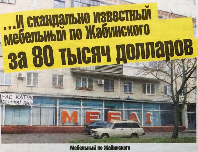 ...И скандально известный мебельный по Жабинского за 80 тысяч долларов