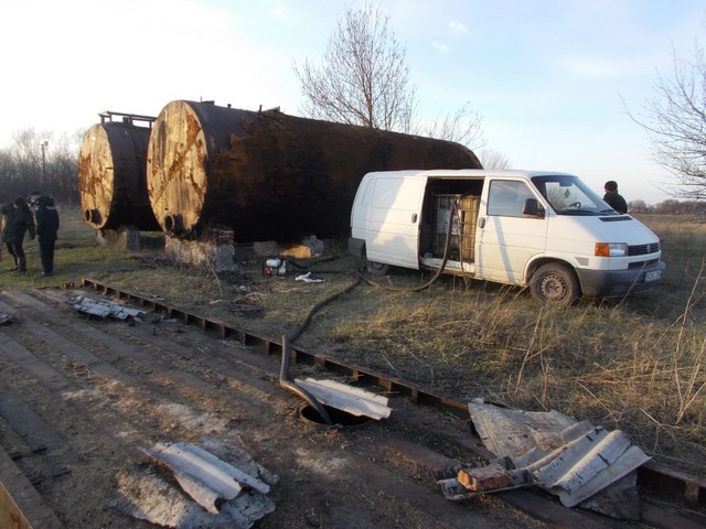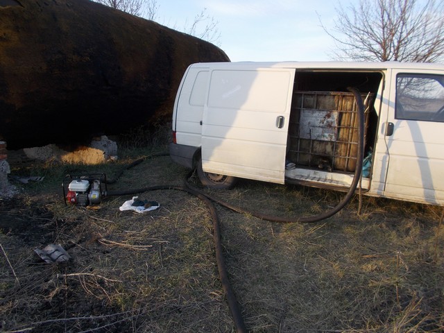 Під час перекачування нафти з резервуара до бочок по 1058 літрів кожна, встановлених у їх мікроавтобусі, зловмисників було викрито працівниками поліції.