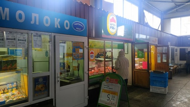 В рыбном павильоне жители микрорайона могут выбрать по своему вкусу свежемороженую, охлажденную, соленую и копченую рыбу. Также, в продаже есть кальмары, мидии и креветки.