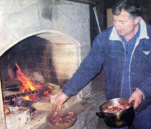 Отпираться было бессмысленно. Телячий шашлык манил видом и запахом. А мы же после работы, голодные. Хотя у журналистов рабочий день не нормирован. Жарить шашлык взялся товарищ и компаньон Закро — Ризо ГУРУЛИ. В камине потрескивали дрова, а на них лежали какие-то круги. Оказалось, это огнеупорные глиняные сковородки кетси, привезенные из Грузии.