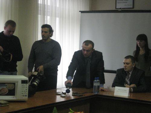 А от організатори прес-клубу продемонстрували не лише згаданий ролик, а й провели експеримент: ми журналісти виділили для нього свої телефонні апарати ( той, що з найбільшим рівнем випромінювання теж брав участь) і почався експеримент. Зернята кукурудзи оточені п’ятьма нашими мобілками ніяк не хотіли готуватись, ми дзвонили і дзвонили, а вони все не готувались. В цей час представники СЕС тільки мовчки посміхались. А може попкорн не справжній?! Нарешті, нам все пояснили, а точніше – показали ще один ролик, тільки вже про те, як саме знімався попередній (той, де готували попкорн). Виявляється все діло в магнітроні, який Інтернетні умільці витягнули з мікрохвильової печі і помістили під столом, прямо під зернятами кукурудзи. А коли мікрохвильову включили (у цей час на мобільні апарати здійснювався дозвон) – зернята перетворились на попкорн. Ото й увесь фокус! До речі, і наші зернята, ті що так вперто не піддавались дії мобілок, в мікрохвильовій печі приготувались швидко і вийшли дуже смачними. Ось так розвіюються міфи!