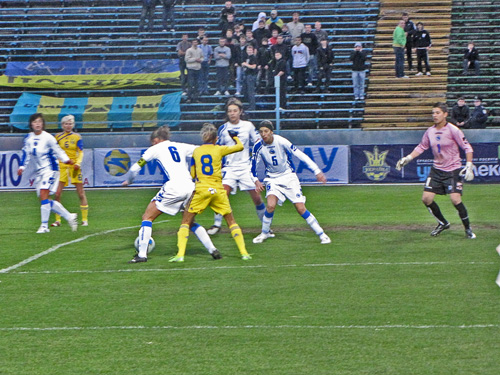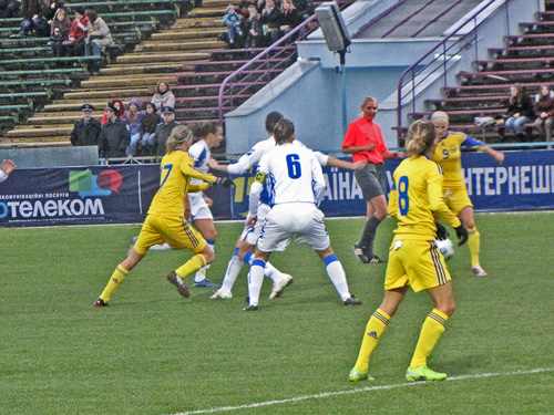 Наши девушки выступают в 4-й группе квалификационного турнира, куда помимо балканской команды, входят еще сборные Румынии, Польши и Венгрии. В первом матче украинки уступили сборной Польши со счетом 1:4, и занимали предпоследнюю строчку в турнирной таблице своей группы. Команда Боснии-Герцеговины, провела две квалификационные встречи, и не набрала ни одного очка. Немногочисленные болельщики, пришедшие в этот прохладный осенний день на стадион (цена билетов на международный матч, была 6 гривен), вправе были ожидать победы от «сине-желтых».