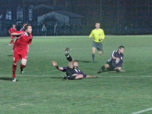 В середине второго тайма у «сталеваров» появился великолепный шанс удвоить преимущество. Богдан Кобец в своей штрафной в «чистом» подкате выбивает мяч из-под ноги соперника, который естественно падает, оказавшись без мяча. Судья показал на одиннадцатиметровую отметку. То ли справедливость восторжествовала, то ли нападающий гостей Акименко пробил бесхитростно, но Яковец парировал этот мяч.