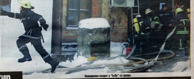 Кафе «Буба» горит — эта новость облетела Чернигов через несколько минут после начала пожара. Загорелось заведение в четверг, 1 марта, утром. В 11.28 поступил сигнал пожарникам. Огонь вспыхнул на кухне. Предварительная причина, которую назвали пожарные на месте происшествия, неполадки с проводкой. Прошла неделя, окончательная причина — короткое замыкание электросети. К этому могли привести и перегрузка, и механическое повреждение. К примеру, микротрещины в изоляции. Дым валил из окон и дверей. Четыре пожарных машины и два с половиной десятка спасателей. А во внутреннем дворе плакали жильцы дома, в котором кафе, хватали одежду, детей, котов и выскакивали на улицу.