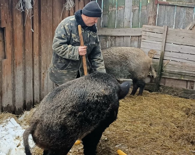 «Я без вил не заходжу, бо кабан жирує, б’ється. Вони маленькими були, то підбігали, жирували, а виросли, то які вже жирки? – каже господар. – Недавно свиня саме тічку водила, то кабан сердитий. Вона, видно, несправна. Більше року вони «свадьбу» водять і все ніяк не дає спарувать».