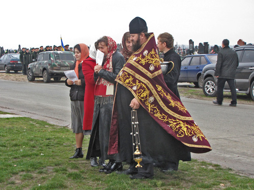 Почетный член Украинского общества охраны памятников истории культуры, почетный гражданин Чернигова Г. А. Кузнецов отметил, что война не закончена, пока не захоронен пропавший без вести последний солдат. Представителями духовенства был прочитан молебен о погибших воинах.