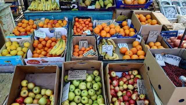 Фрукты на рынке, как всегда, тоже на любой вкус. Всю зиму мы наслаждаемся разными сортами яблок и груш, виноградом, тропическими и цитрусовыми фруктами. В одном месте на сельском рынке семейная пара торгует черновицкими яблоками (Флорена, Чемпион, Лигол, Яблоко-Груша) по цене всего от 10 до 15 гривен за килограмм. А в павильоне яблоки таких же сортов продают от 15 до 21 гривен (сорта Симиренко, Айдаред, Флорена, Яблоко-Груша, Лигол и др.).