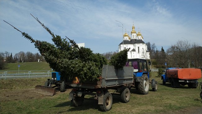 «Сьогодні висадили 7 сербських ялинок висотою 3-3,5 м. Протягом тижня на задньому фоні висадимо ще 7 голубих ялинок Глаука. Вони будуть трохи вищі — 4-4,5 метри. Загалом вся композиція складатиметься з 18-ти ялин (разом з 4-ма сербськими, які вже були висаджені на тому місці у 2019 році)», - сказав Артем Стах.