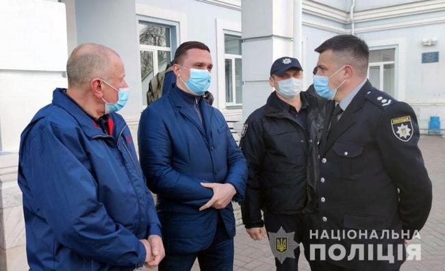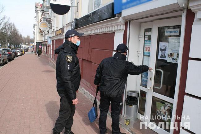 Так, у Ніжині поліцейські спільно з міським головою Олександром Кодолою та начальником Держпродспоживслужби перевірили дотримання карантинних норм у супермаркетах, вокзалі, на зупинках громадського транспорту.