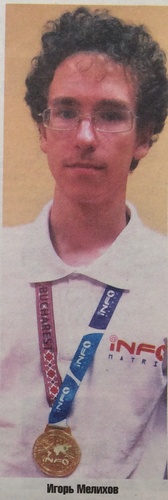Золотую медаль и тысячу долларов получил Игорь Мелихов, ученик черниговской школы №1, на Всемирном детском конкурсе по информатике «Инфоматрикс» в Бухаресте (Румыния). Парень занял первое место в номинации «Программирование». Игорь — участник всевозможных школьных олимпиад, хорошо знает английский и французский. Программировать научился сам с помощью бесплатных интернет-курсов. Учиться хочет в черниговском политехе.