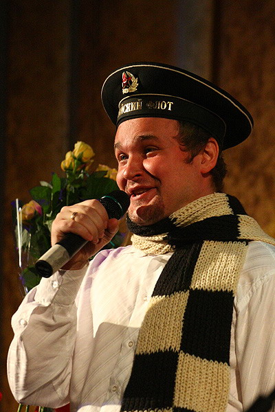 Вице-президент ЗАО « КСК Чексил» Дмитрий Попов предстал перед зрителями в образе военного и исполнил песню „ Эх, дороги”.