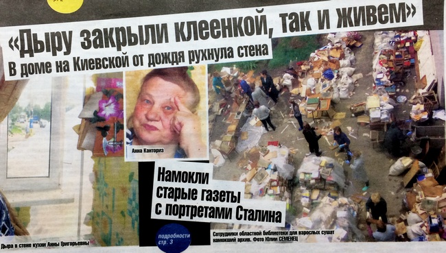 Во вторник, 3 июля, в начале шестого вечера на заднем дворе областной библиотеки имени В.Г. Короленко, что в центре Чернигова, по соседству с областной радой, сотрудники по цепочке передают друг дружке мокрые книги, подшивки газет. Обложки тщательно протирают. Литературу складывают на траве, ставят у стены.