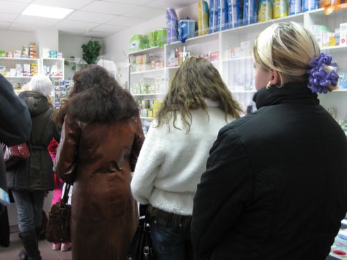 Ситуация со свиным гриппом привела к тому, что еще в пятницу в аптеках нашего города раскупили все маски и, практически, все противогриппозные препараты. Что самое интересное, в разных аптеках их стоимость колебалась от 48 копеек до 10 грн. Единственный набор с маской, халатом и бахилами был обнаружен в аптеке при магазине «ДЦ» возле Детского мира, стоимостью 10 грн.