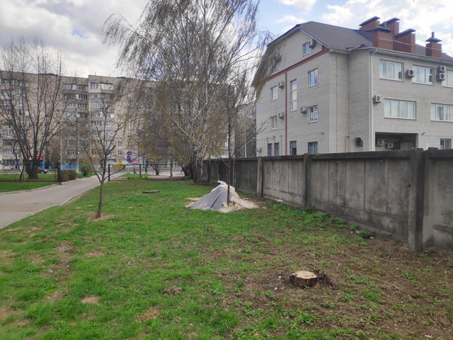 Дивлячись на зруби дерев, можна зробити висновок, що частина з них, дійсно - хворі та пошкоджені, але ж далеко не всі, а особливо шкода величезну вербу, яка знаходилась біля колишнього тенісного корту. Під її вітами відпочивали десятки родин з дітьми з навколишніх вулиць, тепер же від дерева лишився лише пеньок.