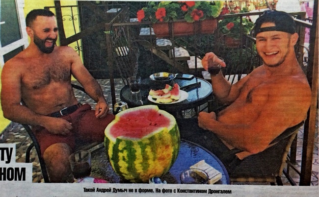 «Вино. Кавун! Херсонські аристократи», — прокомментировал некто Юрий Дорошенко. «Херсонські аристократи в Залізний Порт на відпочинок не їздять», — ответил Думыч.