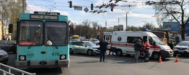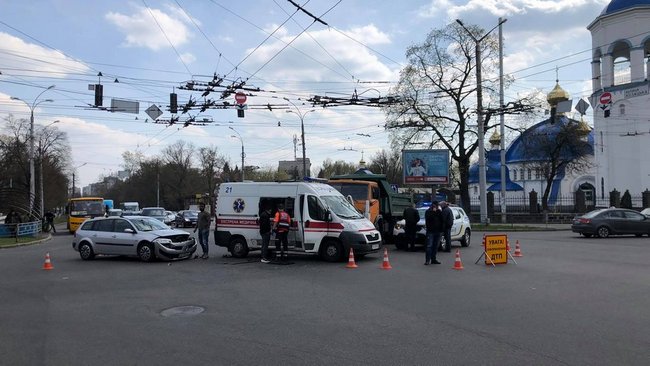 За інерцією «швидка» пошкодила легковик Renault, який стояв на світлофорі на вулиці Героїв Чорнобиля. Його водій на камеру говорити відмовився. Пояснив, що пошкодив руку. Однак, від госпіталізації відмовився.