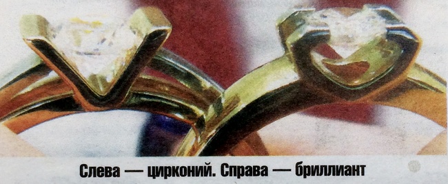Новый год, — перечисляет Руслана. — Берут в основном те, кому принципиально носить именно бриллиант. Если камень, то либо так, либо никак. И важно для себя, а не чтоб вокруг все знали. Потому как новый отполированный цирконий визуально довольно сложно отличить от бриллианта, — в подтверждение своих слов продавец показывает два похожих колечка. Цирконий даже красивее переливается под освещением.