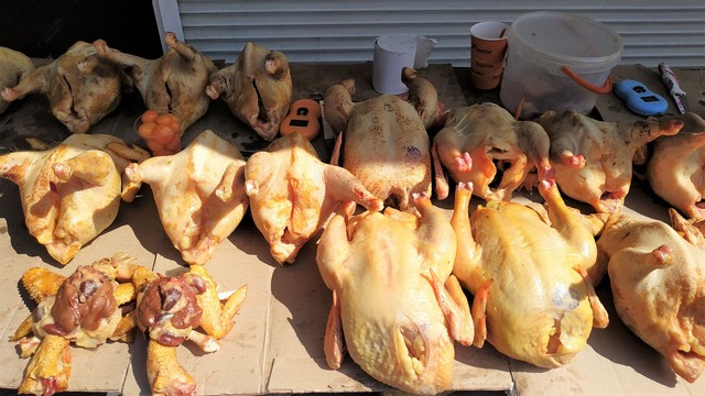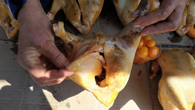 - Ми привозимо раз на тиждень свіженькі курочки, півники та курчата. Місця в павільйоні нам не дають, так попросили, щоб дали нам тут трошки поторгувати. Вдома у нас господарство зі 100, а може і більше курей. Є бройлерні сорти, є супові. Цілий день тим і займаємося, що годуємо їх, поїмо. Маємо землі по 5 гектарів, є своє зерно, тому наші курочки наростили ось такий жирок. Ріжемо відразу перед тим, як поїхати до Чернігова на базар. В будні дні продаємо по 80 гривень за кілограм, сьогодні перед святами - по 100, курячі набори для супчику - по 25 грн. Зазвичай, все, що привозимо, все і продаємо. Під кінець торгівлі, можемо поступитися за ціною, щоб не везти додому.