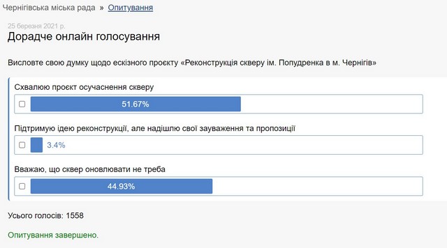 Закінчилось онлайн голосування по проєкту оновлення скверу ім.Попудренка