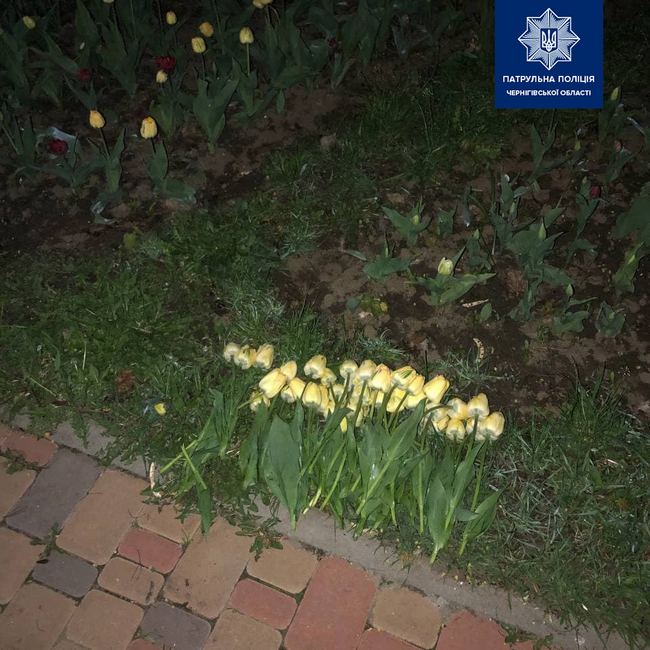 Квіти для подарунку: патрульні спіймали чернігівця, який рвав квіти у Центральному парку
